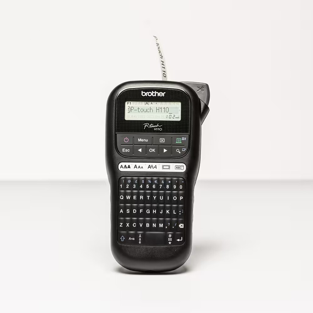 Com seu formato robusto, o PT-H110BK utiliza fitas TZe da Brother.